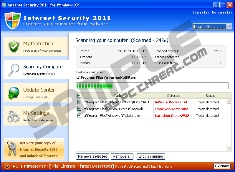 Internet Security 2011Despite the tireless efforts of the online security industry, many users are still falling victim to the seditious and treacherous Internet Security 2011. Internet Security 2011, a direct clone from the subversive Antivirus 2010 shares more than just the same Rootkit with this well known and highly despised rogue. Users will recognize Internet Security 2011 by its crippling symptoms, as this rogue has the ability to leave any infected PC utterly devastated and unusable. Internet Security 2011 will block the execution of legitimate executables in an effort to keep the user from running a security application which could detect and remove Internet Security 2011 from the PC. This can quickly turn into an intensely annoying situation, and users who receive the following message: “Windows cannot access the specified device, path, or file. You may not have the appropriate permissions to access the item.” ...can easily regain control and access to the desired program, simply by making use of the cacls.exe application, standard with any Windows operating system. Go the Command Prompt folder on the system, and type the following to give the “Everyone group access to the file again: “cacls /G Everyone:F” In an effort to trick users, Internet Security 2011 will replace a crucial Windows component called userinit.exe. Users should not delete this .exe file as it is a critical part of the Windows operating system. Its default location is located at "c:WINDOWSsystem32us?rinit.exe (Do not delete the C:WindowsSystem32userinit.exe file)" Of course, like many other roguewares Internet Security 2011 makes use of false system scanners and bogus system notifications in an effort to panic the users into parting with their cash. Some of the more notorious fake warnings to be on the lookout for include the following: “Attention! Network attack detected! “Attention! Threat detected! “Windows Security Alert Obviously none of these fake messages can be trusted, and users should never believe any correspondence received from Internet Security 2011. Inexperienced users should not attempt to manually remove Internet Security 2011. Rather make use of a genuine and fully updated security tool which will be able to get rid of Internet Security 2011 permanently. This will also offer protection against future similar threats. | ||||||||