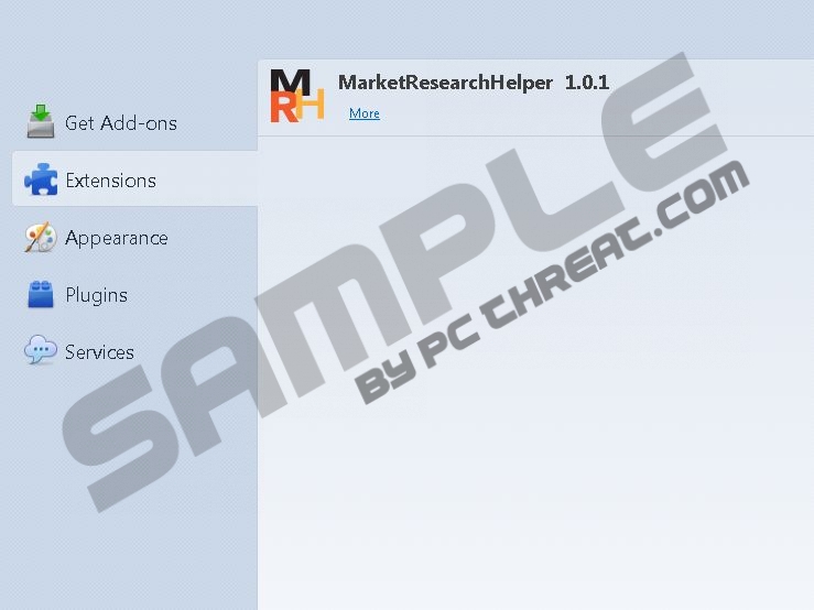 MarketResearchHelperMarketResearchHelper is program the objective of which is to collect anonymous information about how computer users browse the Internet. The program is works silently in the background of the system and is said to be advertisements-free. The user is supposed to voluntarily install this application on his/her computer in order to help some researchers gather information about Internet users’ interests and behavior. Even though it is claimed that MarketResearchHelper does not display advertisements, it is categorized as adware because it is sponsored by some third-parties. Most important, it can be removed from the computer by reputable spyware and malware prevention programs, and, if you want to get rid of this adware program, take action right now. MarketResearchHelper is compatible with Internet Explorer, Mozilla Firefox and Google Chrome. As for Google Chrome, it has been discovered that the program does not work on the latest versions of the Internet browsers. If you have MarketResearchHelper on your computer, we recommend that you remove it straight away, especially if you are sure that you have not installed it yourself. MarketResearchHelper is bundled with various free programs; it may be attached to installers distributing browser extensions, media players, trial versions of system optimization programs, etc. Without reading the information provided by the installation wizard, you cannot prevent the installation of additional programs, so do not forget to review the license agreement before clicking the Yes or Agree button. MarketResearchHelper may provide you with third-party advertisements, which are neither endorsed nor owned by SuperWeb, which is the developer of the program. MarketResearchHelper may be utilized by cyber criminals to distributed deceptive advertisements, which is one of the reasons why it is advisable to remove MarketResearchHelper from the browsers. Third-party websites are governed by separate privacy policies, which you should review before downloading programs or purchasing some products or services on unknown websites. MarketResearchHelper is not the only product of SuperWeb, and if you like downloading various free computer applications, you should keep in mind that that you may encounter some other programs of SuperWeb, including Surftastic, HypeNet, Allgenius, Glomatron, etc. These programs are very often bundled with other browser add-ons, video players and system optimization programs. If you want to remove MarketResearchHelper in no time, we recommend using SpyHunter because this real-time security program can easily eliminate MarketResearchHelper from your browsers and shield the system from various computer threats, such as Trojan horses, browser hijackers, rootkits, worms, and adware programs. How to remove MarketResearchHelperWindows Vista and Windows 7