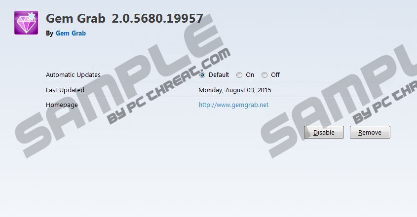 Gem GrabGem Grab is yet another adware application that is built on the Injekt engine. This adware is no news to our researchers, who say that it is identical to Sale Charger, Assist Point, Positive Finds, and many more. Gem Grab is also very similar to the SuperWeb family of ad-supported applications. On the whole, most adware programs are the same. Their only purpose is to generate revenue for their developers based on the pay-per-click system. The more ads you click on, the more traffic they redirect to third-party websites. The only problem is that it is not without danger: You can easily end up on unsafe websites. But this is not all. While for a lot of users adware ads seem like innocent commercials, they hold potential threats to your privacy and system security. If you do not remove Gem Grab, you might even put your system in jeopardy of being scammed by criminals. Although this useless application has an official but very plain website, gemgrab.net, it is unavailable for download there. This is a rather suspicious trait and general characteristic of adware, because these applications mostly spread over the net in free software bundles. Since it is possible that more than one infection is packed alongside a legitimate free program, you can imagine what happens if you install such a bundle. Obviously, you will have multiple security issues simultaneously, and not all of them may be as conspicuous as adware. You may not even realize it, but silently in the background criminals might gain access to your computer, your hard drive, your files, and your data. Deleting Gem Grab is only one step towards security. In order to be certain that your PC is free of infections, we suggest a full system scan as well. Gem Grab is the usual deal, nothing more, nothing less. This adware presents you with third-party banner ads, pop-up ads, and shopping offers. These ads can seriously destroy your general browsing experience. At the same time, these third-party advertisements might also lead to malicious websites. Nobody can guarantee the reliability of the contents you might be exposed to. You might also start seeing relevant ads, too, which are more likely to entice you into clicking. You need to know that those tailored ads are the result of analysis of data collected about you executed by this adware. The only reason for these targeted ads is to make sure you click. Keeping Gem Grab on your system is a bit like taking a stroll on a field of landmines. If you want to protect your system and your files, you should not think twice about removing it. We have kept the best part for the end: It is very simple to get rid of Gem Grab. Even if you go for the manual removal option, you can accomplish it within a minute. If you need a crutch, you can use our instructions below. Since this adware is quite likely not the only “uninvited guest” on your computer, it is advisable to run a full system scan to detect the presence of other infections. If the scan finds any issue, you should not hesitate to install a professional antimalware program in order to fix those and protect your computer from further infections. How to remove Gem Grab from WindowsWindows XP