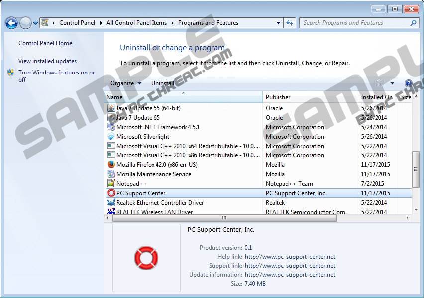 You might think that you will remove PC Support Center and EZ Software Updater by uninstalling them via Control Panel. Unfortunately, that is not entirely right. Once you uninstall this unwanted software, you will need to remove leftovers using the Registry Editor. Of course, you know that modifying and removing registries is a very sensitive task, and, if you do not think you can succeed without making mistakes, it might be a good idea to utilize automated malware removal software. If you are ready to proceed manually, first delete PC Support Center via Control Panel, and then move to the Registry Editor. PC Support Center RemovalRemove from Windows XP: