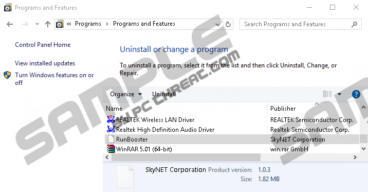 RunboosterRunbooster is a Trojan, and like any other similar threats, it is difficult to notice it on the system. However, our researchers found out that in some cases the malware may display suspicious advertising content. Thus, if you notice an increase of advertisements unrelated to your used keywords or leading you to potentially harmful websites, it might be the best time to check the system and see if there are infections on it. If you happen to detect Runbooster, you could try to eliminate it manually by following the instructions we added below this text. For less experienced users it would be advisable to acquire a reliable antimalware tool that could help you delete the threat more easily. In addition, we recommend reading the article as it will provide you with more information about this malicious program. Users might encounter Runbooster by downloading data from malicious websites or installing potentially dangerous applications. It means there are more chances to face such infections if you occasionally install suspicious freeware, updates, and so on. This particular malware may show doubtful advertising content so it is possible it could settle on the system with adware or other applications supported by advertising. As a result, we would advise users to be extra cautious with freeware, especially if you find it promoted on unreliable file-sharing web pages or pop-up ads. Without a trustworthy antimalware tool it might be difficult to identify these potentially dangerous programs, so we would advise you consider getting a legitimate security tool to strengthen the computer’s security. To see if Runbooster managed to enter the system, users should check the following directories %PROGRAMFILES%, %PROGRAMFILES(x86)%, %WINDIR%\System32\Tasks. If the malware settled on the PC, these locations should contain files and folders related to the Trojan. In some cases, the threat may even appear on the Control Panel’s Programs and Features list, so it might be possible to uninstall it, although we cannot say if it would remove the malicious program entirely. For those who wonder how harmful Runbooster could be, we can say that there are two main risks. The first one is related to the computer’s security and its performance. As we mentioned above the malware might be showing potentially dangerous advertisements that could encourage you to download other malicious software or lead you to harmful web pages. Plus, this infection might be capable of adding suspicious applications on its own without asking the user. Such actions may put your computer and files on it in danger as well as lower the system's performance. The other risk is related to the user’s personal information, for example, details about his banking account, email or social media passwords, computer’s login information, and so on. Apparently, the Trojan could be capable of stealing such data while recording the user’s keystrokes. Our researchers say the malicious application could even allow its creators to access other sensitive data or files placed on the PC. As you realize, to avoid the mentioned risks it is better to get rid of this malicious program as soon as possible. Firstly, we would recommend using a reliable antimalware tool since it can help users detect and erase the Trojan automatically. Moreover, such software could identify even other potentially dangerous applications that might have been installed together with the malware or with its help. Besides cleaning the system, the tool could also continue to guard the system against threats if you simply keep it updated. Nonetheless, if you believe you are fully capable of removing the infection manually as well as eliminating other possible threats, we can offer you the deletion instructions placed at the end of this page. They will guide users to the directories where the malicious application should have placed its files and folders. The provided steps will also instruct how to erase such data. If there are any questions related to the Trojan, you could ask them by leaving a comment below or contact us through social media. Erase Runbooster
