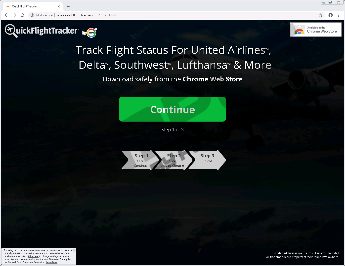 QuickFlightTracker ToolbarQuickFlightTracker Toolbar is a potentially unwanted application that works as a browser extension. We have been dealing with apps from this family for many years now, so we can more or less say almost everything there is to say about this application. The good news is that the removal of this application is not complicated at all. You can delete QuickFlightTracker Toolbar from your system by following the removal instructions below this description. For any further questions, please do not hesitate to leave us a comment. Our team is always ready to assist you. We have mentioned that we know which family this program comes from. If you have been following computer security news, you must be familiar with the Mindspark Toolbar family. This group has been prevalent for quite some time now, and it does not seem like it is going to stop releasing new apps any time soon. Throughout the years, the Mindspark Toolbar family has been classified as many different computer security threats. First, they used to be treated as browser hijackers because they tend to change your browser’s settings. Now we categorize them as potentially unwanted programs. It means that QuickFlightTracker Toolbar is not a malicious computer infection, and it enters your system with your permission. However, there might be certain aspects of this application that you may deem undesirable. One of the main reasons we cannot say that QuickFlightTracker Toolbar is a computer infection is the fact that it has its official homepage. You can access it at quickflighttracker.com, and the button that is supposed to add the extension to your browser works just fine on Internet Explorer, Chrome, and Firefox. Therefore, we can see that the extension does not enter your system unless you allow it to. Here a few users might say that they have never visited the official website, and they did not intend to have QuickFlightTracker Toolbar on their browsers, and yet it IS there. So what happened? The truth is that the official website is clearly not the only distribution source. Such applications often get distributed via pop-ups and freeware sharing websites. So it means that users may install this application accidentally when they access random websites or when they download other software. You might not think much about installing a freeware application, but please take your time to check the installation steps because you might be given the opportunity to avoid QuickFlightTracker Toolbar, and you might miss it. So when this toolbar enters your browser, it inflicts certain changes that you will notice immediately. Because of these modifications, QuickFlightTracker Toolbar sometimes might be called a browser hijacker, but please note that users AGREE to perform these changes even if they are not aware of that. When you add the extension to your browser, you should see a pop-up that informs you about the oncoming modifications. However, more often than not users do not check what these pop-ups say, and they add the extensions nevertheless. As a result, QuickFlightTracker Toolbar changes the new tab settings and the default search engine. The extension uses the myway.com search engine, but it is powered by Google, so technically it does not offer anything new. What’s more, the extension can modify your search results to display commercial advertisements. Those advertisements may be related to your likes and preferences because it is very likely that QuickFlightTracker Toolbar will employ tracking cookies to collect information on your web browsing habits. While such behavior is not malicious, it can be quite risky, especially if there is a third party ready to exploit the information this extension collects. To put it simply, if you did not intend to have this application on your browser, it would be for the best to remove QuickFlightTracker Toolbar today. Each browser requires different removal process, but you can find the instructions for that below. Also, you should scan your computer with the SpyHunter free scanner because there is a very good chance that you have more unwanted applications installed. Such programs often come in packs, and users fail to notice them. Finally, you should invest in a legitimate computer security application that would protect you from similar intruders in the future. You should do everything you can to protect your system and your personal information from malicious exploitation. How to Remove QuickFlightTracker ToolbarChrome